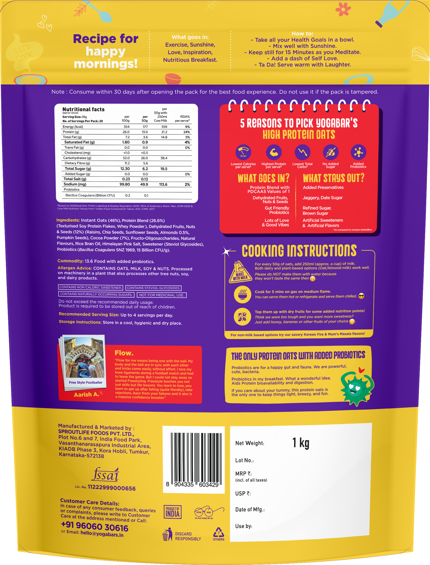 - India’s highest protein per serve oats