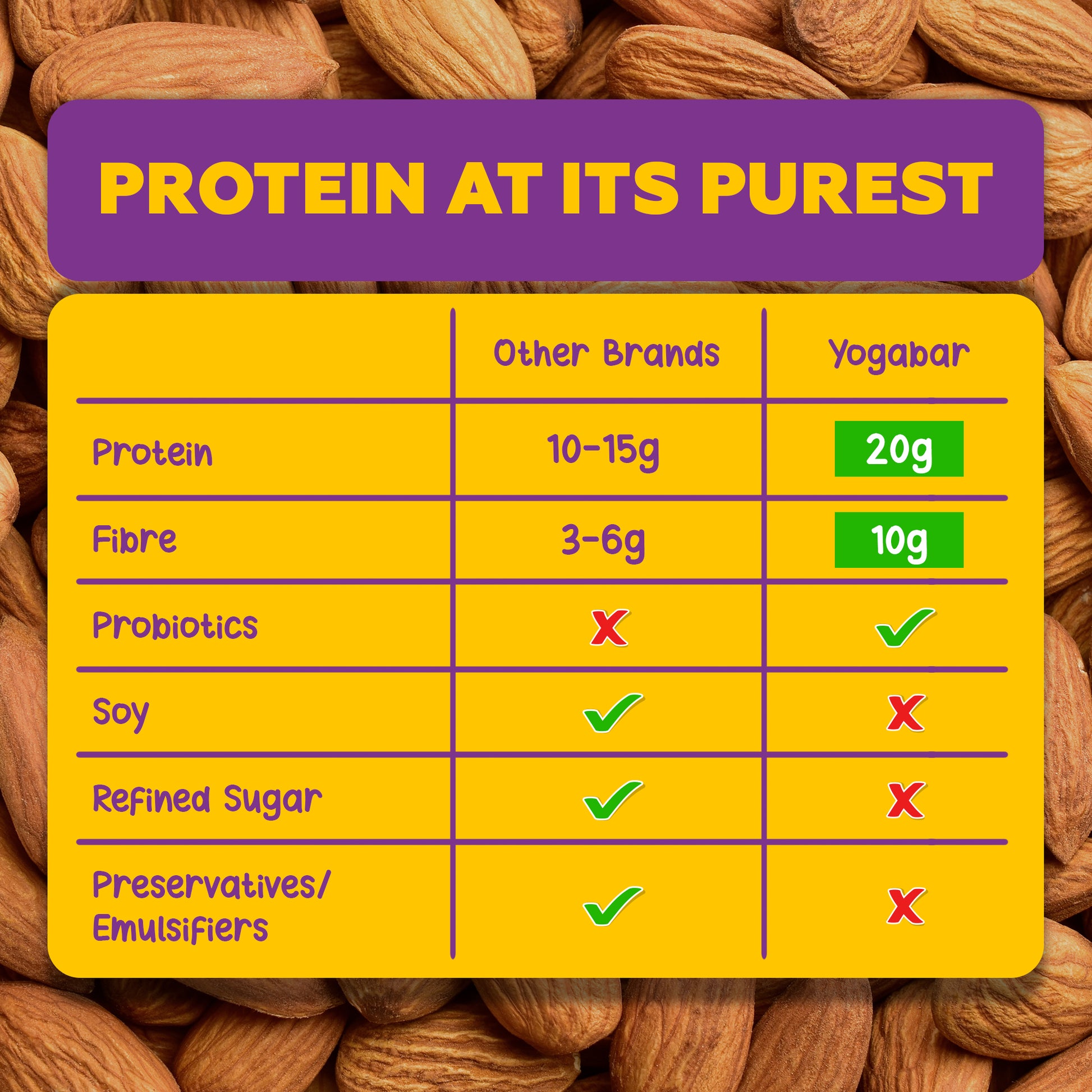 Protein bar has never been exciting for me until i have tasted this yogabar protein bar which comes in 3 flavours (almond fudge hazelnut and choclate). My personal favourite is choclate one. One protein bar is enough like a meal. It is really delicious. I really like it.